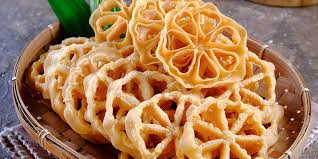 Karena bentuknya yang seperti bunga dan digoreng dengan cara digoyangkan dari cetakannya di dalam minyak panas hingga terlepas. Terbuat dari tepung beras