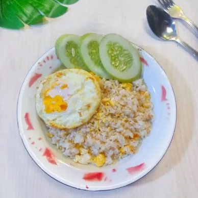 Berupa nasi yang digoreng dengan sedikit minyak goreng yang di tambahkan bawang merah, bawang putih, cabe . Di sajukan bersama dengan kerupuk , ratau timun
